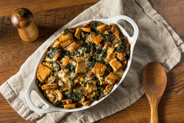 - Σκεπάζετε το μείγμα με το σπανάκι με τις άλλες 6 φέτες ψωμιού. Πασπαλίζετε την επιφάνεια με το υπόλοιπο τυρί. Χτυπάτε ελαφρά την κρέμα γάλακτος με το 2ο αυγό και περιχύνετε το φαγητό. Ψήνετε 40'-45' στο φούρνο μέχρι να ροδίσει η επιφάνεια. Αφήνετε λίγο να κρυώσει και σερβίρετε.