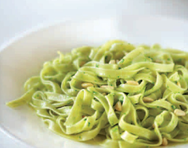 - Αδειάζετε το πέστο ρόκας στην κατσαρόλα, ρίχνετε τις στραγγισμένες ταλιατέλες ή παπαρδέλες και ανακατεύετε σε μέτρια φωτιά. Πασπαλίζετε με το υπόλοιπο κουκουνάρι και την υπόλοιπη παρμεζάνα και σερβίρετε.
