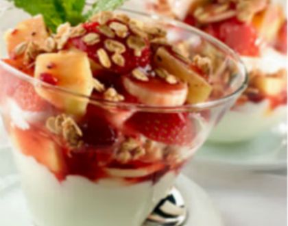 - 3 φλιτζάνια φρούτα κομμένα σε φέτες (φράουλες, μπανάνες, ανανάς)