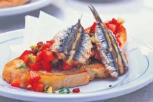 - Πάνω σε κάθε φέτα φρυγανισμένου ψωμιού, σκορπίζετε τα κυβάκια της ντομάτας, βάζετε 2 σαρδελίτσες και πασπαλίζετε με λίγο φρεσκοτριμμένο πιπέρι.