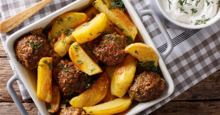Νόστιμες ιδέες για το καθημερινό τραπέζι. Φτιάχνουμε φουρνιστούς κεφτέδες με πατάτες & σάλτσα ξινόκρεμας