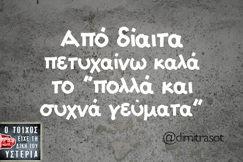 Blogs Mood for Fun: Δίαιτα ΙΙ ICookGreek Team - 20 Μαΐου, 2014 0 Facebook Twitter Viber Messenger WhatsApp Email Snapshots που αποτυπώνουν σκέψεις και διαθέσεις της στιγμής. Snapshots που αποτυπώνουν σκέψεις και διαθέσεις της στιγμής. ΠΗΓΗ: Ο Τοίχος Είχε τη Δική του Υστερία