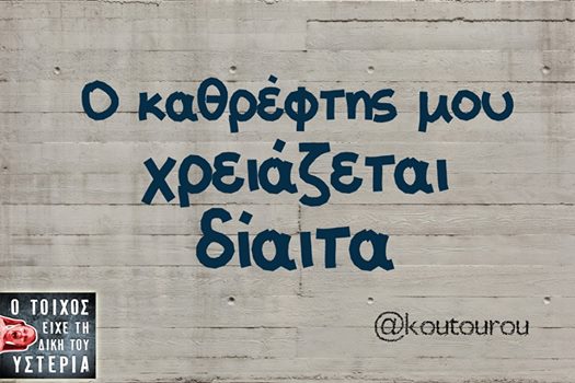 Blogs Mood for Fun: ο καθρέφτης και η δίαιτα ICookGreek Team - 2 Οκτωβρίου, 2014 0 Facebook Twitter Viber Messenger WhatsApp Email Snapshots που αποτυπώνουν σκέψεις και διαθέσεις της στιγμής. Snapshots που αποτυπώνουν σκέψεις και διαθέσεις της στιγμής. ΠΗΓΗ: Ο τοίχος είχε τη δική του υστερία