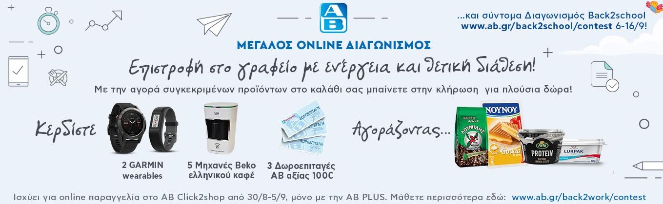 Η ΑΒ Βασιλόπουλος, λίγο πριν τo τέλος των καλοκαιρινών διακοπών και την επιστροφή στην καθημερινότητα επανέρχεται δυναμικά με 2 οnline Διαγωνισμούς με πολλά δώρα και εκπλήξεις για όλους.