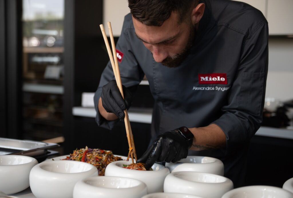 Για τα εγκαίνια του νέου Miele X Gruppo Cucine Concept Store, οι δύο εταιρείες διοργάνωσαν ένα ολοήμερο concept event, χωρισμένο σε δύο μέρη. Το πρώτο ήταν αφιερωμένο σε εκπροσώπους των media, οι οποίοι είχαν τη δυνατότητα να δουν σε πραγματικό χρόνο τη λειτουργία των συσκευών Miele, με ένα ξεχωριστό Cooking Class από το exclusive σεφ της Miele, Αλέξανδρο Συνγκιρίδη, ανακαλύπτοντας τις ασυναγώνιστες δυνατότητες των AI συσκευών της Miele αλλά και την κομψή εργονομία του χώρου κουζίνας από την Gruppo Cucine. Το δεύτερο event ήταν αφιερωμένο σε διακεκριμένους αρχιτέκτονες και κατασκευαστές, το οποίο πλαισιώθηκε από ιδιαίτερες γεύσεις και ένα ξεχωριστό και wine tasting από τον οινολόγο Αρτέμη Λάινα.