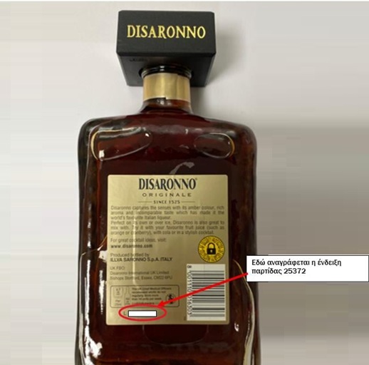 Ανακαλείται παρτίδα του λικέρ DISARONNO, ύστερα από απόφαση του Γενικού Χημείου του Κράτους (ΓΔ ΓΧΚ) της ΑΑΔΕ, μετά από ενημέρωση που έλαβε από εταιρεία διακίνησης αλκοολούχων ποτών σχετικά με την πιθανή παρουσία θραυσμάτων γυαλιού.