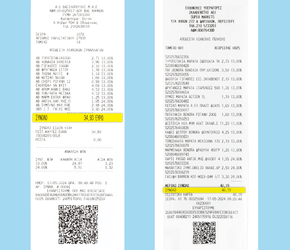 Συγκεκριμένα, τόσο στο «τρέχον» φυλλάδιο της όσο και στον επίσημο ιστότοπό της, η Lidl Hellas προχωρά στη σύγκριση τιμών και αλυσίδων σούπερ μάρκετ στη βάση ενός καλαθιού με 14 προϊόντα ιδιωτικής ετικέτας που εμπορεύεται η ίδια και τα αντίστοιχα δύο κύριων ανταγωνιστών της. Αν και στο κείμενο κάνει λόγο για Σούπερ Μάρκετ Α και Σούπερ Μάρκετ Β, στις φωτογραφίες των αποδείξεων ταμειακής που αναρτά φροντίζει να τα «κατονομάσει» -ή τουλάχιστον να τα απεικονίσει- αφού είναι εμφανέστατα τα ονόματα της ΑΒ Βασιλόπουλος αλλά και της Σκλαβενίτης. Μπορεί να δει κανείς τις αποδείξεις στο κάτω μέρος της σελίδας της Lidl Hellas πατώντας εδώ.