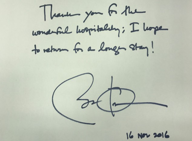 Ο Ομπάμα απόλαυσε τη διαμονή του στο ξενοδοχείο, αφήνοντας μάλιστα και ιδιόχειρο σημείωμα στον Αστέρα Βουλιαγμένης, στο οποίο έγραφε: «Σας ευχαριστώ για την εξαιρετική φιλοξενία. Εύχομαι να επιστρέψω για να μείνω περισσότερες μέρες».