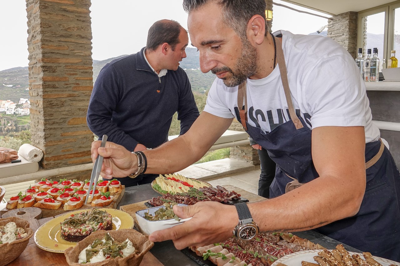 Ο ανεπτυγμένος πρωτογενής τομέας της Άνδρου, η κτηνοτροφία και η αλιεία, προμηθεύουν τις επιχειρήσεις του νησιού με εκπληκτικά πρώτης ύλης προϊόντα. Από αυτά τα προϊόντα άντλησε έμπνευση ο καταξιωμένος Ελληνοαμερικανός σεφ Νίκ Πουλμέντης, ο οποίος ταξίδεψε από την Αμερική στην Ελλάδα προκειμένου να στηρίξει την προσπάθεια του νησιού. «Η Ελλάδα είναι ένας ευλογημένος τόπος και η Άνδρος μας το επιβεβαίωσε. Ο γαστρονομικός πλούτος του νησιού αποτελεί έμπνευση για δημιουργία. Όλα τα προϊόντα είναι φτιαγμένα με αγάπη και μεράκι». Σε έναν πανέμορφο χώρο, στο οινοποιείο «Κουρτέση», ο Νικ Πουλμέντης, πλαισιωμένος από σεφ επιχειρήσεων του νησιού, δημιούργησαν εξαιρετικές γευστικές προτάσεις βασισμένες σε ανδριώτικες συνταγές και πρώτες ύλες. Παράλληλα, ο κορυφαίος Έλληνας sommelier Άρης Σκλαβενίτης μίλησε για τα ανδριώτικα κρασιά.