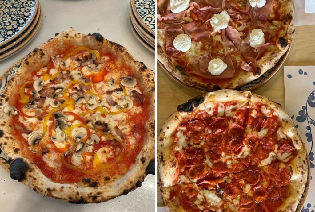 Στο αυθεντικό ιταλικό εστιατόριο ανάμεσα στις επιλογές ξεχωρίζουν η Mamy Blue με μοτσαρέλα Fior di Latte, gorgonzola, guanciale, καραμελωμένο κρεμμύδι και σχοινόπρασο, η Marinara με σάλτσα ντομάτας San Marzano, σκόρδο, ρίγανη και έξτρα παρθένο ελαιόλαδο, αλλά και η Modena με μορταδέλα, μοτσαρέλα Fior di Latte, burratina και πέστο βασιλικού με φυστίκι Αιγίνης.