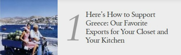 «Ένας τρόπος για να στηρίξουμε την Ελλάδα είναι επενδύοντας στην οικονομία της, στην ελληνική μόδα, στα ελληνικά προϊόντα διατροφής, στα ελληνικά κοσμήματα. Ευτυχώς, σε αυτούς τους τομείς, δεν ξέρεις τι να πρωτοδιαλέξεις», αναφέρει στο εισαγωγικό της σημείωμα η Τζέσι Χέινμαν.