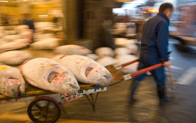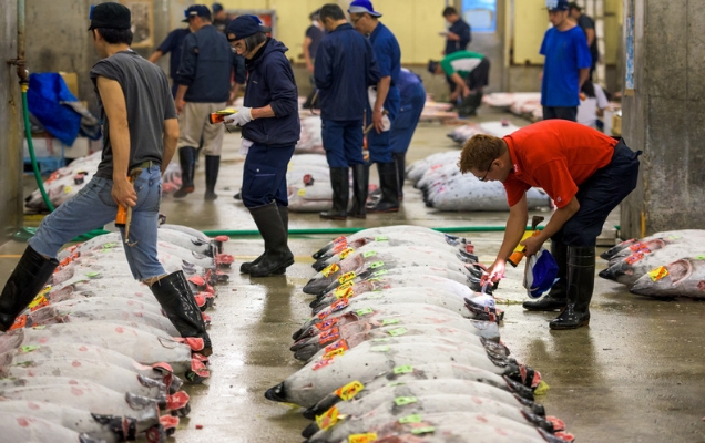 Η πολύβουη αγορά ψαριών Tsukiji, σύμφωνα με το BBC, έκανε την τελευταία της δημοπρασία τόνου λίγο πριν από την αυγή. Οι δημοπρασίες τόνου στο ιστορικό αυτό μέρος είναι από τα πλέον δημοφιλή τουριστικά αξιοθέατα στην πρωτεύουσα της Ιαπωνίας και «χτυπάνε» ψηλές τιμές -ειδικά την Πρωτοχρονιά, όταν πολλοί επαγγελματίες θεωρούν γούρι για την επιχείρησή τους να λάβουν μέρος και να φανούν γενναιόδωροι. Εδώ έχει επιτευχθεί άλλωστε και το ιστορικό ρεκόρ των 1,7 εκατομμυρίων δολαρίων που καταβλήθηκαν για ένα ολόκληρο (άκοπο) τόνο bluefin το 2013.