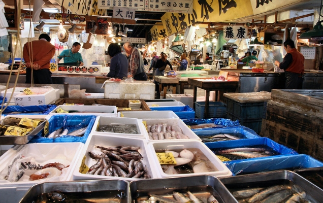 Σχεδόν 500 είδη θαλασσινών διακινούνταν στο Tsukiji, που βρίσκεται σε κοντινή απόσταση από την πολυτελή συνοικία Ginza, όπου συγκεντρώνονται μερικά από τα κορυφαία εστιατόρια του Τόκιο. Οι σεφ που αναζητούν τα καλύτερα διαθέσιμα προϊόντα -το σούσι είναι ιδιαίτερα απαιτητικό ως προς την απόλυτη φρεσκάδα των θαλασσινών- έχτισαν με τα χρόνια στενές σχέσεις με τους προμηθευτές. Ο τεράστιος όγκος και η ποικιλία των προϊόντων προσέλκυε επίσης δεκάδες χιλιάδες τουρίστες κάθε χρόνο.