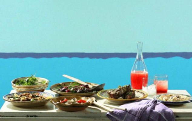 Και μετά έρχεται το κυρίως πιάτο. Τι θα ήθελε ο διάσημος σεφ: Παϊδάκια αρνιού, μαριναρισμένα με σκόρδο, ξύσμα λεμονιού και ρίγανη, ψητά στη σχάρα. Ψητό χταπόδι, σαλάτα με κάπαρη, σέλινο, κομμένο λεμόνι και καπνιστή πάπρικα, ψητές μελιτζάνες με το λιωμένο φρέσκο σκόρδο, ραντισμένο με πάστα ταχίνι και πασπαλισμένα με μαϊντανό. Ψητή κόκκινη πιπεριά μαριναρισμένη σε ξίδι, ελαιόλαδο και δεντρολίβανο, με κομμάτια φέτας από πάνω. Φάβα πουρέ με κόκκινο κρεμμύδι και κάπαρη και ελαιόλαδο. Παντζάρια με γιαούρτι πασπαλισμένα με άνηθο και καλαμάρια τηγανητά. Και για επιδόρπιο, φρέσκα λευκα ροδάκινα και λίγη κρέμα.