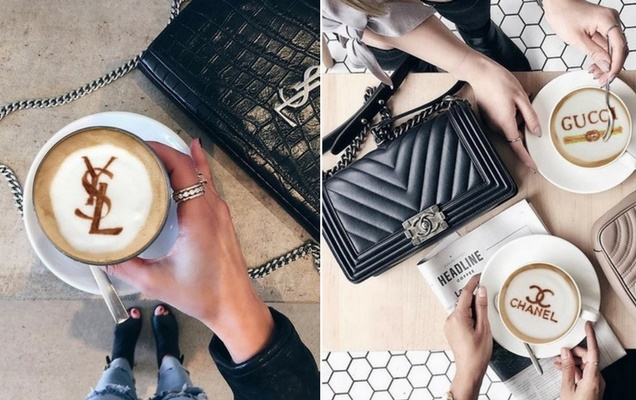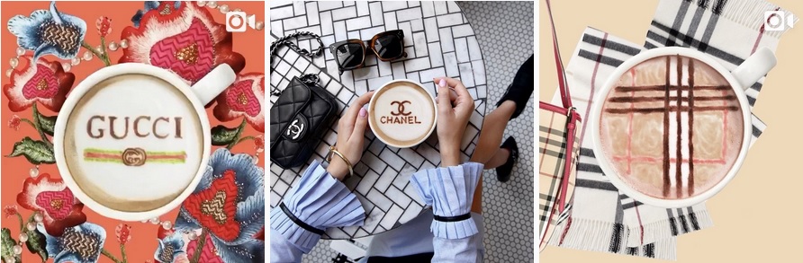 Βροχή οι καρδούλες για καφέδες latte, που στην επιφάνειά τους έχουν «ζωγραφισμένα» λογότυπα πανάκριβων σχεδιαστών και οίκων όπως των Givenchy, Chanel, Yves Saint Laurent, αλλά και εταιρειών με δημοφιλή αθλητικά είδη όπως της Adidas και της Nike.