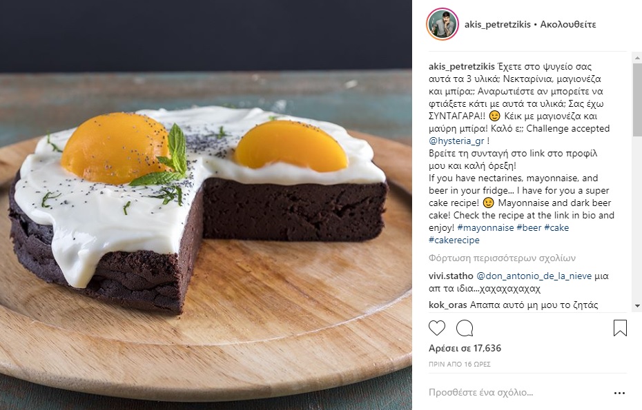 Με το …προβοκατόρικο ερώτημα «Έχετε στο ψυγείο σας αυτά τα 3 υλικά; Νεκταρίνια, μαγιονέζα και μπίρα;; Αναρωτιέστε αν μπορείτε να φτιάξετε κάτι με αυτά τα υλικά; Σας έχω ΣΥΝΤΑΓΑΡΑ!!» και μια «μελετημένη» φωτογραφία, ώστε σε πρώτη φάση να παραπλανεί, ο δημοφιλής σεφ ξεσήκωσε τους χιλιάδες φίλους του στο Instagram που έριξαν …βροχή από καρδούλες και σχόλια.