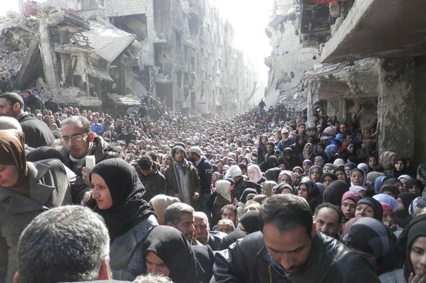 Νότια Δαμασκός, λίγο καιρό πριν. Η φωτογραφία που έδωσε στη δημοσιότητα ο ΟΗΕ -τραβηγμένη πριν λίγους μήνες- δείχνει τις στρατιές των πεινασμένων μέσα στα χαλάσματα του στρατοπέδου προσφύγων Γιαρμούκ στη Νότια Δαμασκό να περιμένουν το πιάτο με το φαΐ απ’ τα Ηνωμένα Έθνη που θα τους σώσει (;) από την ασιτία. Τίτλοι όπως «Συγκλονιστικό», «Σοκ», «Φρίκη» συνοδεύουν -και δικαίως- το φωτογραφικό ντοκουμέντο όπου δημοσιεύεται. Καλό και χρήσιμο θα ήταν, να θυμόμαστε τους τίτλους αυτούς και όταν κάποιοι από τους κυνηγημένους απ’ την πείνα και την αγωνία του θανάτου αυτούς ανθρώπους φτάνουν ως την πόρτα της Ευρώπης ζητώντας άσυλο.