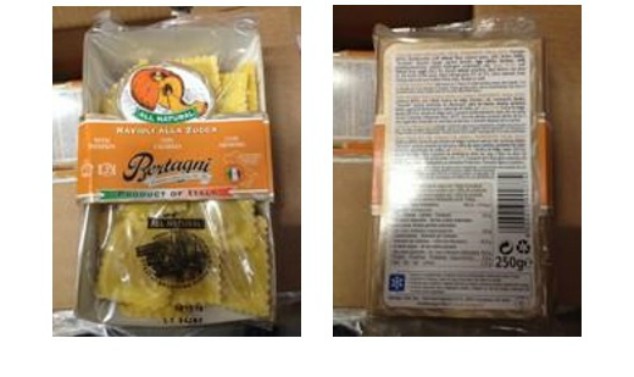 Ο ΕΦΕΤ ενημερώθηκε, μέσω του Συστήματος Έγκαιρης Προειδοποίησης για τα Τρόφιμα και τις Ζωοτροφές (RASFF), σχετικά με τη διακίνηση φρέσκων ζυμαρικών (ravioli), Ιταλικής προέλευσης, στα οποία ανιχνεύτηκε η παρουσία αμυγδάλων και κάσιους χωρίς να αναφέρονται στην ετικέτα του προϊόντος. Τα αμύγδαλα και τα κάσιους είναι συστατικά που μπορεί να προκαλέσουν αλλεργία και να επηρεάσουν άτομα με ευαισθησία σε αυτά. Πρόκειται για το προϊόν με εμπορική ονομασία “Ravioli alla Zucca”, σε συσκευασία των 250g, με αριθμούς παρτίδας 539A, 540C, 540E και 542B και ημερομηνίες λήξης 22/11/2015, 1/12/2015, 3/12/2015 και 14/12/2015, αντίστοιχα, το οποίο παρασκευάζεται από την Ιταλική εταιρεία “Bertagni 1882 Spa” και διανέμεται και πωλείται στην Ελλάδα από την αλυσίδα υπεραγορών “ΑΒ ΒΑΣΙΛΟΠΟΥΛΟΣ”.