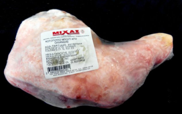 Ο Ε.Φ.Ε.Τ. και συγκεκριμένα η Περιφερειακή Διεύθυνση Ανατολικής Μακεδονίας & Θράκης, στο πλαίσιο των ελέγχων που διενεργεί και σε συνεργασία με το ΚΕΕΛΠΝΟ, Περιφερειακό Εργαστήριο Δημόσιας Υγείας Θεσσαλίας, διενήργησε δειγματοληψία παρασκευάσματος από κατεψυγμένο μπούτι τεμαχισμένου κοτόπουλου Ολλανδίας, ατομικά συσκευασμένο υπό κενό, με χώρα σφαγής την Ολλανδία και Kωδικό Σφαγείου NL 5021 EG και χώρα τεμαχισμού την Ελλάδα στην εγκατάσταση «Χ. ΜΙΧΑΣ ΑΕΒΕ» με κωδικό GR Α 132 EU, Lot number 201527834, ημερομηνία παραγωγής 20/3/2015 και με ημερομηνία λήξης 19/3/2017.
