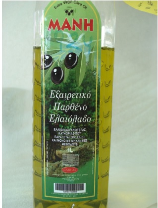 Ο Ε.Φ.Ε.Τ. και συγκεκριμένα η Περιφερειακή Διεύθυνση Ανατολικής Μακεδονίας & Θράκης, στο πλαίσιο των ελέγχων που διενεργεί και σε συνεργασία με την Χημική Υπηρεσία Μακεδονίας Θράκης – Υποδιεύθυνση Θεσσαλονίκης, διαπίστωσε ότι το προϊόν το οποίο πωλείται ως «Εξαιρετικό Παρθένο Ελαιόλαδο», με την εμπορική ονομασία «ΜΑΝΗ», συσκευασίας του 1 λίτρου και ημερομηνίας λήξης 30-12-2016, που εμφανίζεται να παράγεται από την ΕΛΑΚ Α.Ε. με έδρα ΚΡΟΚΕΕΣ ΛΑΚΩΝΙΑΣ και διακινείται από την ΜΑΝΑΚΟΝ Α.Ε., με έδρα το Πανόραμα Θεσσαλονίκης, βρέθηκε να περιέχει σπορέλαιο σε πολύ μεγάλο ποσοστό, τεχνητά χρωματισμένο, ως φυτικό έλαιο ξένο προς το ελαιόλαδο.