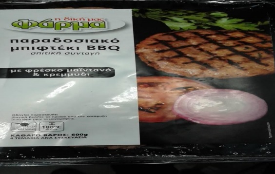 Συγκεκριμένα, πρόκειται για το προϊόν με την εμπορική ονομασία «H δική μας φάρμα παραδοσιακό μπιφτέκι BBQ με φρέσκο μαϊντανό και κρεμμύδι», συσκευασμένο, με κωδικό παρτίδας 26102017 και ημερομηνία ανάλωσης έως : 26.10.2018. Το ανωτέρω προϊόν παράγεται και συσκευάζεται από την επιχείρηση «Π. Καμαράτου και ΣΙΑ Ε.Ε.» , ΒΙ.ΠΑ. Μαρκόπουλου.