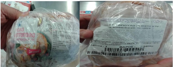 Συγκεκριμένα, πρόκειται για το προϊόν με την εμπορική ονομασία «ΑΒ ρολό κοτόπουλο με μπέικον και τυρί», συσκευασμένο, με ημερομηνία κατάψυξης : 23.09.2017, αριθμό παρτίδας : Trace ID : 1517266608 και ημερομηνία ανάλωσης έως : 17.03.2019. Το ανωτέρω προϊόν παράγεται και συσκευάζεται για την ΑΒ ΒΑΣΙΛΟΠΟΥΛΟΣ Α.Ε., Λεωφόρος Σπάτων.