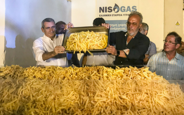 H Ένωση Αγροτικών Συνεταιρισμών Νάξου κατέρριψε το ρεκόρ Γκίνες για τη μεγαλύτερη μερίδα τηγανητές πατάτες, αφού κατάφερε να τηγανίσει μια μερίδα βάρους 625 κιλών!