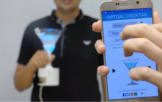 Σε μια εποχή όπου τα όρια ανάμεσα στο πραγματικό και στο ψηφιακό συγχέονται όλο και περισσότερο, τελικά μάλλον δεν πρέπει να ξενίζει το ότι έρχεται η σειρά των κοκτέιλ να αποκτήσουν την εικονική (virtual) εκδοχή τους. Σύμφωνα με το ΑΠΕ, ερευνητές του Εθνικού Πανεπιστημίου της Σιγκαπούρης, με επικεφαλής τον Νιμέσα Ρανασίνγκε, που έκαναν σχετική ανακοίνωση στο συνέδριο της Association for Computing Machinery Multimedia (ACMM) των ΗΠΑ, παρουσίασαν μια πρωτοποριακή συσκευή, η οποία «μεταμορφώνει» ένα απλό παραδοσιακό ποτό σε κάτι διαφορετικό, που ξεγελά ταυτόχρονα τις αισθήσεις της γεύσης, της όρασης και της όσφρησης.