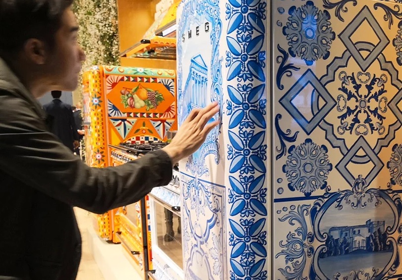Όπως σημειώνει το Αθηναϊκό Πρακτορείο Ειδήσεων -και γίνεται ολοφάνερο από τις φωτογραφίες- στις οικιακές συσκευές των Dolce&Gabbana δεν ταιριάζει ο χαρακτηρισμός «λευκές». Οι δημιουργίες τους διακρίνονται από μοτίβα της σικελικής παράδοσης. Χρωματικά κινούνται σε δύο εκδοχές: το έντονο κόκκινο και πορτοκαλί και το λευκό-μπλε. Και τα δύο εμπνευσμένα από την κεραμική των Σικελών που χρησιμοποιούν την τεχνική της μαγιόλικα (εμφιάλωσης).