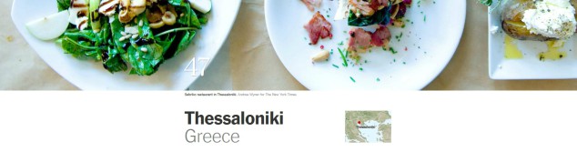 «Η δεύτερη μεγαλύτερη πόλη της Ελλάδας είναι η πρώτη στο φαγητό» σημειώνει ο υπότιτλος του άρθρου, ενώ η συντάκτρια, Ann Mah, αναφέρει μεταξύ άλλων ότι «οι νεαροί επαγγελματίες της Θεσσαλονίκης αντιμετώπισαν την υψηλή ανεργία με έναν ασυνήθιστο τρόπο, ανοίγοντας εστιατόρια, όπου ανακάτεψαν μπαχαρικά και μπέρδεψαν την παραδοσιακή ελληνική κουζίνα με σλαβικά και οθωμανικά αρώματα». Ενθαρρυμένοι από έναν ζωντανό φοιτητόκοσμο και έναν οραματιστή δήμαρχο, σύμφωνα με την Ann Mah, η δεύτερη μεγαλύτερη πόλη της Ελλάδας «έχει γίνει η πρωτεύουσα των φθηνών γευμάτων».