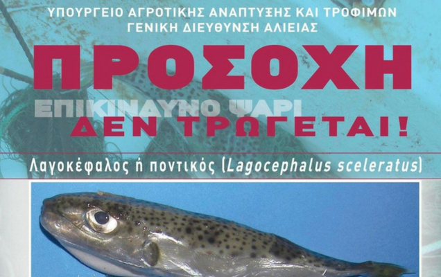 «Εφιστούμε την προσοχή των καταναλωτών, των επαγγελματιών και ερασιτεχνών αλιέων σχετικά με το ψάρι Lagocephalus sceleratus (λαγοκέφαλος) το οποίο έχει εξαπλωθεί και εγκατασταθεί στην Κρήτη. Πρόκειται για είδος εξαιρετικά τοξικό και επικίνδυνο αν καταναλωθεί από τον άνθρωπο και δεν υπάρχει αντίδοτο στην τοξίνη (ΤΤΧ) που περιέχει, η οποία βρίσκεται και στη σάρκα του ψαριού και δεν καταστρέφεται με το μαγείρεμα».