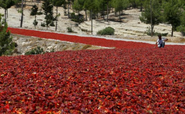 Στην Τουρκία, στην πόλη Κιλίς (που πιθανόν συνδέεται με την αρχαία Ασσυριακή πόλη Κιλισί), οι παραγωγοί έστρωσαν έναν ολόκληρο δρόμο με καυτερές πιπεριές για να τις αποξηράνουν. Στη συνέχεια θα τις μαζέψουν και θα τις διοχετεύσουν στα τοπικά εργοστάσια παραγωγής και συσκευασίας μπαχαρικών.
