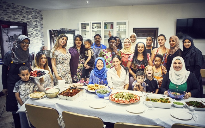 Οι γυναίκες αυτές συναντήθηκαν σε μια κοινοτική κουζίνα, τη Hubb Community Kitchen, στο Μουσουλμανικό Πολιτιστικό Κέντρο Al Manaar, την οποία η 37χρονη δούκισσα του Σάσεξ και πρώην ηθοποιός επισκέφθηκε για πρώτη φορά τον Ιανουάριο και έκτοτε επανειλημμένα, ιδιωτικά, ανακοίνωσαν τα Ανάκτορα του Κένσινγκτον μέσω Twitter.