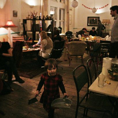 Με άλλα λόγια, ο επισκέπτης κάνει ό,τι θα έκανε και στο σπίτι του (αν είχε πιάνο), στο βαθμό που σέβεται το χώρο και τους υπόλοιπους παρευρισκόμενους. Δηλαδή κάτι γραφίστες, κάτι art…something, κάτι creative-thinkers γενικώς και διάφορες κουλαριστές φατσούλες που ταιριάζουν θαυμαστά με το mix’n’ match περιβάλλον: μια συλλογή από άσχετες μεταξύ τους καρέκλες και τραπέζια, διανθισμένα προσεκτικά με επιλεγμένες vintage «περιέργειες», όλα τοποθετημένα πάνω στο ξύλινο πάτωμα, που δημιουργούν μια ευχάριστη, χαλαρή κατάσταση.