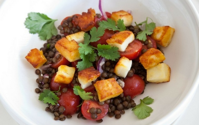 Σαλάτα με φακές, ντοματίνια και τυρί σαγανάκι