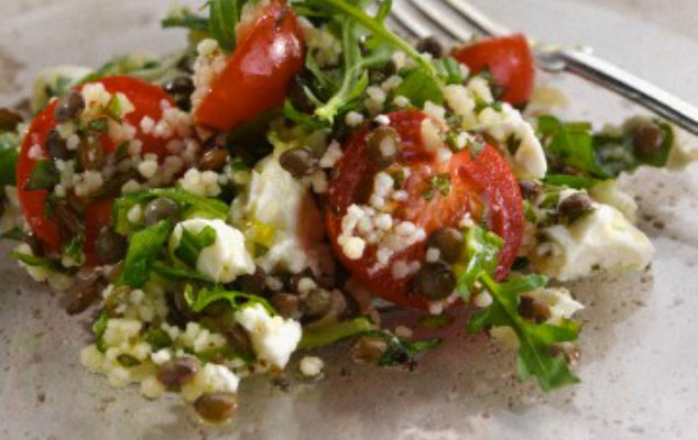 Σαλάτα με φακές, κους κους, ντοματίνια και φέτα
