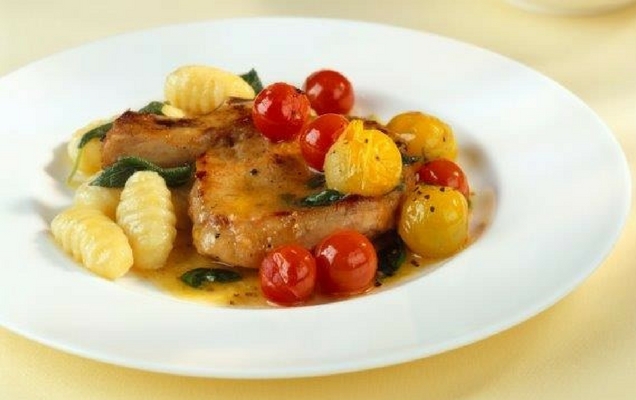 Χοιρινό ρολό με μπέικον, ταμπάσκο και ντοματίνια, γεμιστό με λαχανικά