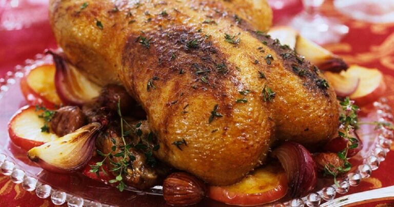 Πάπια γεμιστή με κιμά, ρύζι και κάστανα