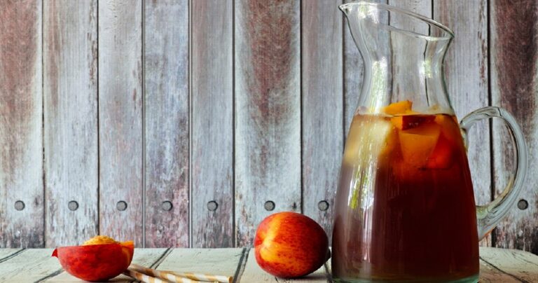 Κρύο τσάι με σπιτικό σιρόπι φρέσκου ροδάκινου