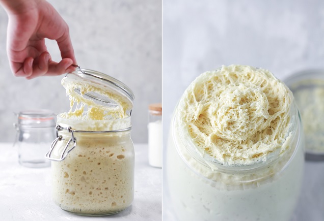 3. Το μπολ ή η γυάλα που θα επιλέξετε, φροντίστε να έχει χώρο για τη σταδιακή αύξηση της ποσότητας του ζυμαροχυλού. Αν προτιμάτε να κρατήσετε την αρχική ποσότητα, θα πρέπει να μπείτε στη διαδικασία πριν το εκάστοτε «τάισμα» του προζυμιού, να πετάτε την επιπλέον ποσότητα που έχει δημιουργηθεί παραμένοντας στα αρχικά γραμμάρια -αυτή η διαδικασία προϋποθέτει χρήση ζυγαριάς ακριβείας.