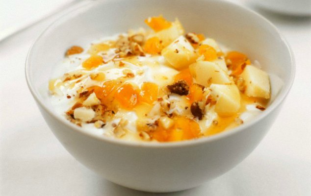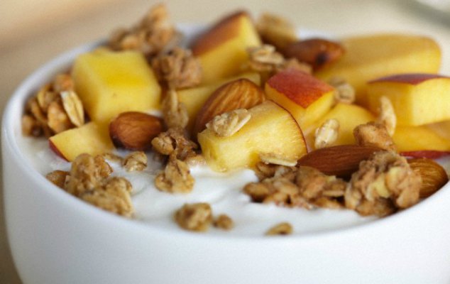 Γιαούρτι με ροδάκινα, καρπούς και δημητριακά