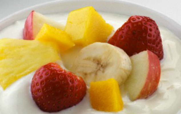 Υλικά: 1 1/2 κεσεδάκι γιαούρτι στραγγιστό, 1/2 μπανάνα σε ροδέλες, 5-6 φράουλες, 6 κομμάτια ζουμερού ανανά