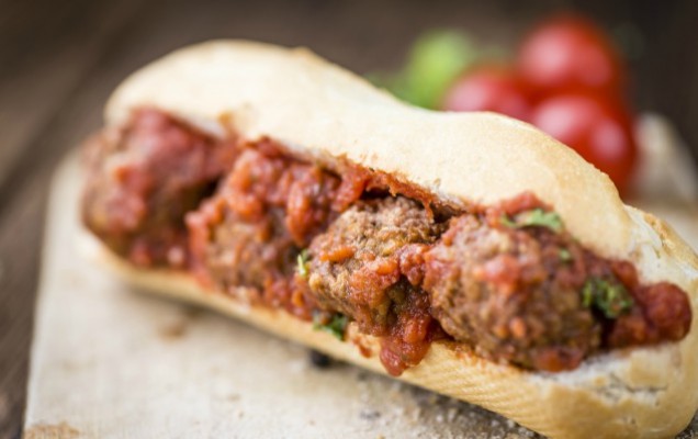 Σάντουιτς με κοκκινιστά κεφτεδάκια και τυρί