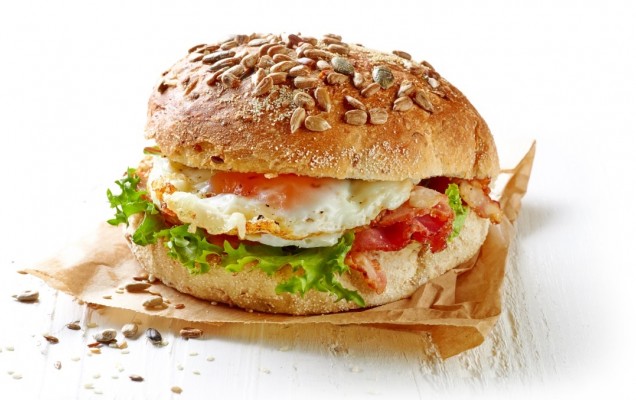 Υλικά: 6 ψωμάκια πολύσπορα. 6 τηγανητά αυγά, 6 φύλλα μαρουλιού, 6 φέτες ντομάτα, μπέικον σοταρισμένο (προαιρετικά), 6 κουταλιές της σούπας cottage cheese
