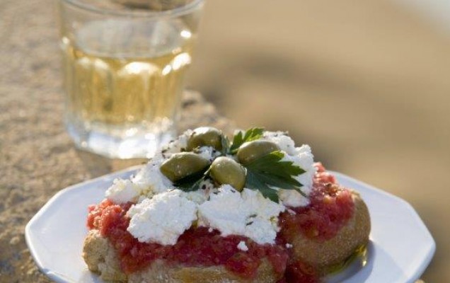 Υλικά: 6 κριθαρένια κρητικά παξιμάδια (ντάκοι), 2 ώριμες ντομάτες, 300 γρ. ξινομυζήθρα κρητική ή φέτα, 9 κουταλιές της σούπας παρθένο ελαιόλαδο, 40 γρ. κάππαρη, λίγο αλάτι, πιπέρι