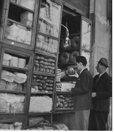 Η τρομακτική εμπειρία της πείνας στο συλλογικό μας θυμικό καταγράφηκε κυρίως ως έλλειψη του ψωμιού. Και στο μετέπειτα λεγόμενο «κατοχικό σύνδρομο» ένα από τα βασικά συμπτώματα –αν μπορούμε να το πούμε έτσι– ήταν η ανάγκη να βρίσκεται άφθονο ψωμί στο τραπέζι ακόμη και όταν η πληθώρα των υπόλοιπων εδεσμάτων καθιστούσαν την παρουσία του κάθε άλλο παρά απαραίτητη. Γιατί η ανάγκη αυτή δεν ήταν πια διατροφική, αλλά βαθιά ψυχολογική [ΦΩΤΟ: Αθήνα, 1947].