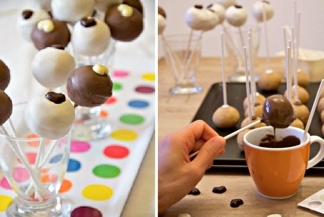 Ωραία διακοσμητική ιδέα είναι και τα cake-pops. Κέικ ή παντεσπάνι, που το κάνουμε τρίμμα με το χέρι και με λίγο βούτυρο η κρέμα γάλακτος το ξαναπλάθουμε σε μπαλάκια, τα οποία περνάμε από γλάσο σοκολάτας, ή λευκό και στη συνέχεια από χρωματιστή τρούφα, καρύδα κ.λπ. Περισσότερες συνταγές για γλυκίσματα που αρέσουν στα παιδιά: Γλυκό με Μπισκότα και Κρέμα Βανίλιας, Γλύκισμα με μπανάνες και πτι μπερ, Σοκολατάκια με Δημητριακά,