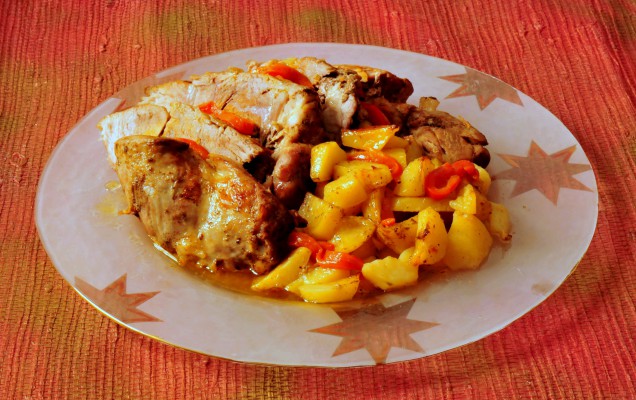 Μελωμένο χοιρινό στη γάστρα με πατάτες