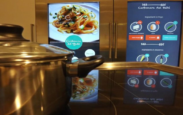 Στην κουζίνα του αύριο. Σε ένα δευτερεύοντα χώρο του Future Food District ο επισκέπτης παίρνει μια γεύση απ’ τις μελλοντικές κουζίνες του κόσμου –το πάλαι ποτέ βασίλειο της καλής νοικοκυράς γίνεται η αυτοκρατορία των «τέκηδων». Οι πόρτες του ψυγείου μετατρέπονται σε γιγαντοοθόνες υπολογιστή κι ο ρόλος του γίνεται ο πλέον κομβικός.