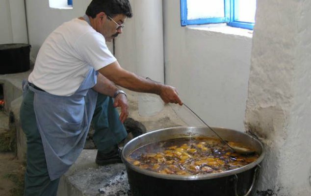 Μοναχικό ξωκλήσι που ζει μια φορά το χρόνο στη γιορτή του Αγίου του, μοναστήρι που σπάει την απόκοσμη σιωπή του για να υποδεχτεί επετειακά την κοσμική βουή, κεντρική εκκλησιά μικρού χωριού που τιμά τον ιερό προστάτη της… Όπου κι αν έτυχε να βιώσει κανείς την εμπειρία του νησιώτικου πανηγυριού, ξέρει ότι στα καζάνια του μαγειρεύεται ένα πολύ ιδιαίτερο κεφάλαιο της ελληνικής παραδοσιακής κουζίνας.
